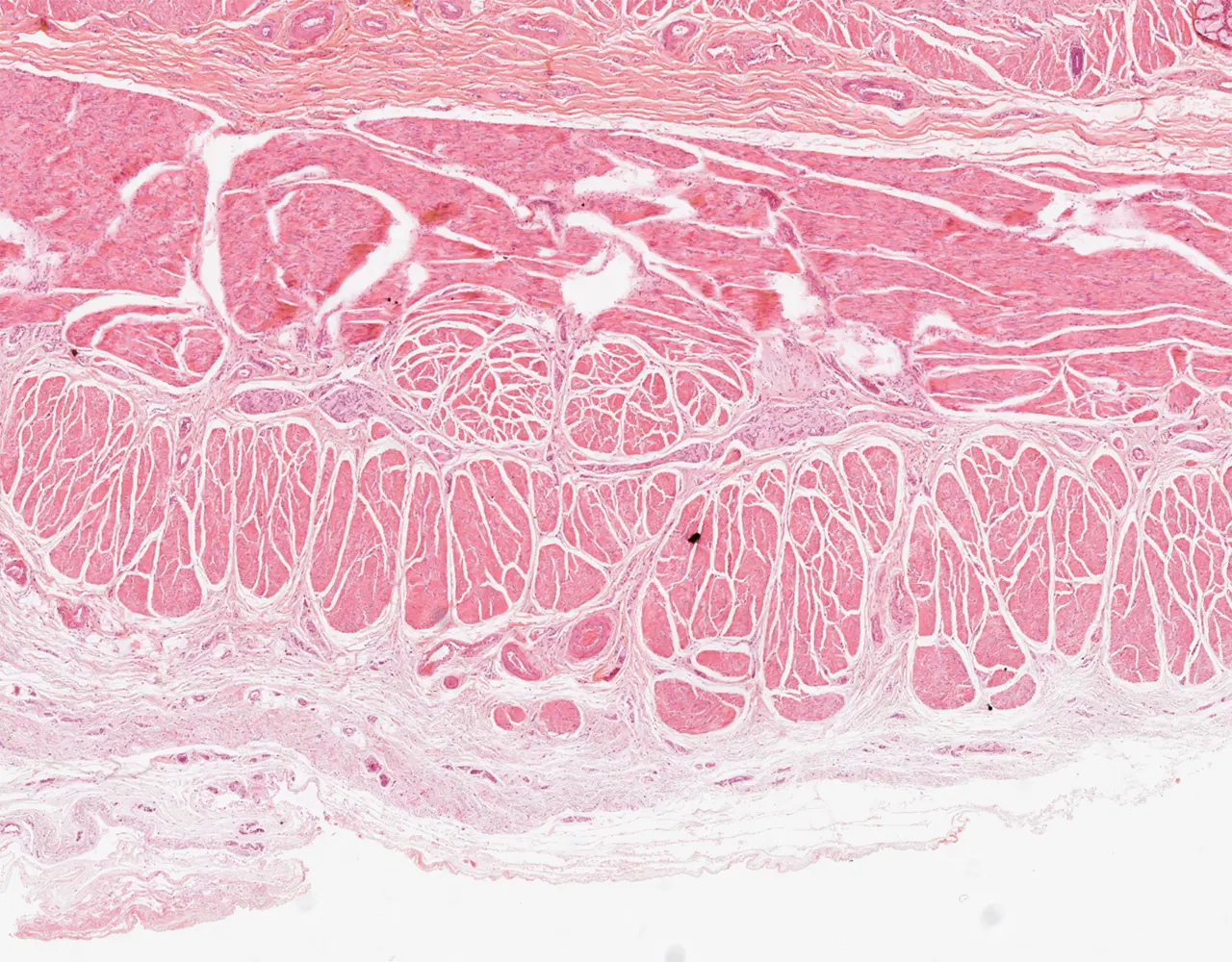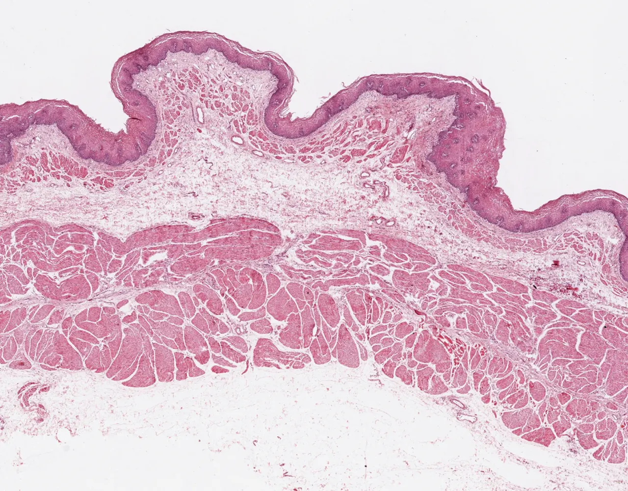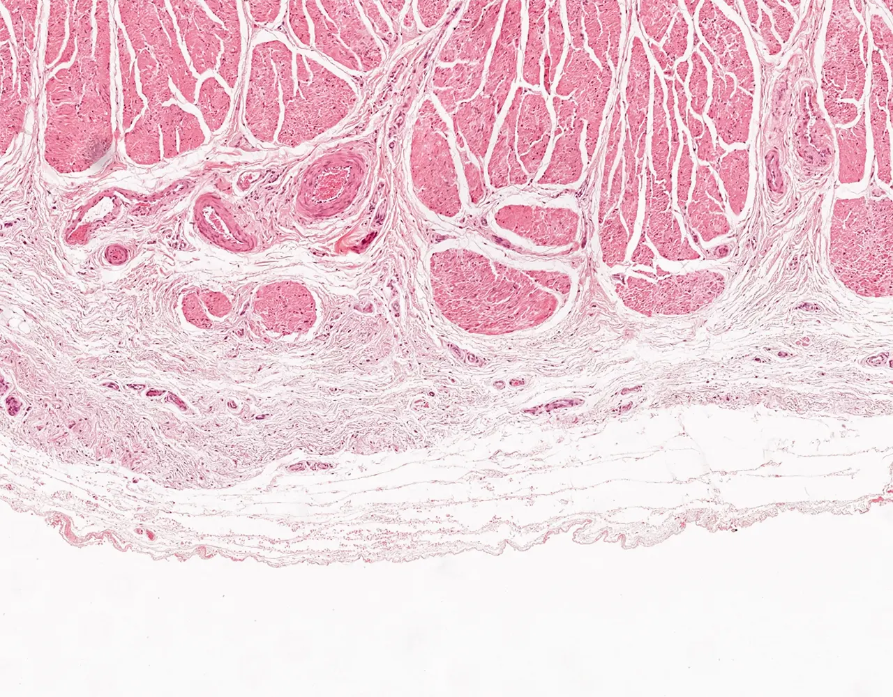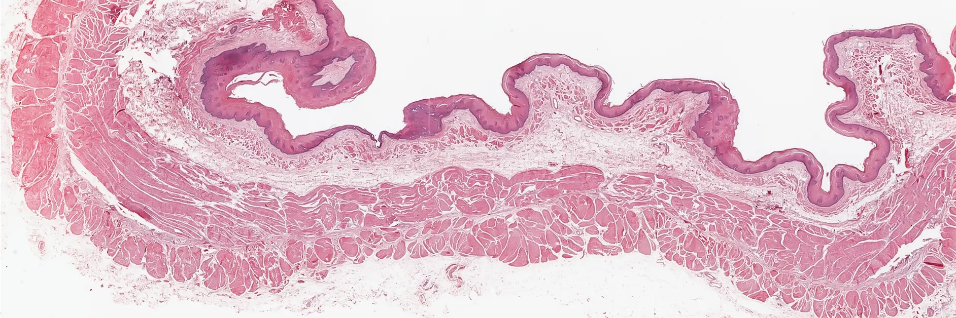 - Microscopically, the esophagus is composed of four layers: mucosa, submucosa, muscularis propria, and adventitia.