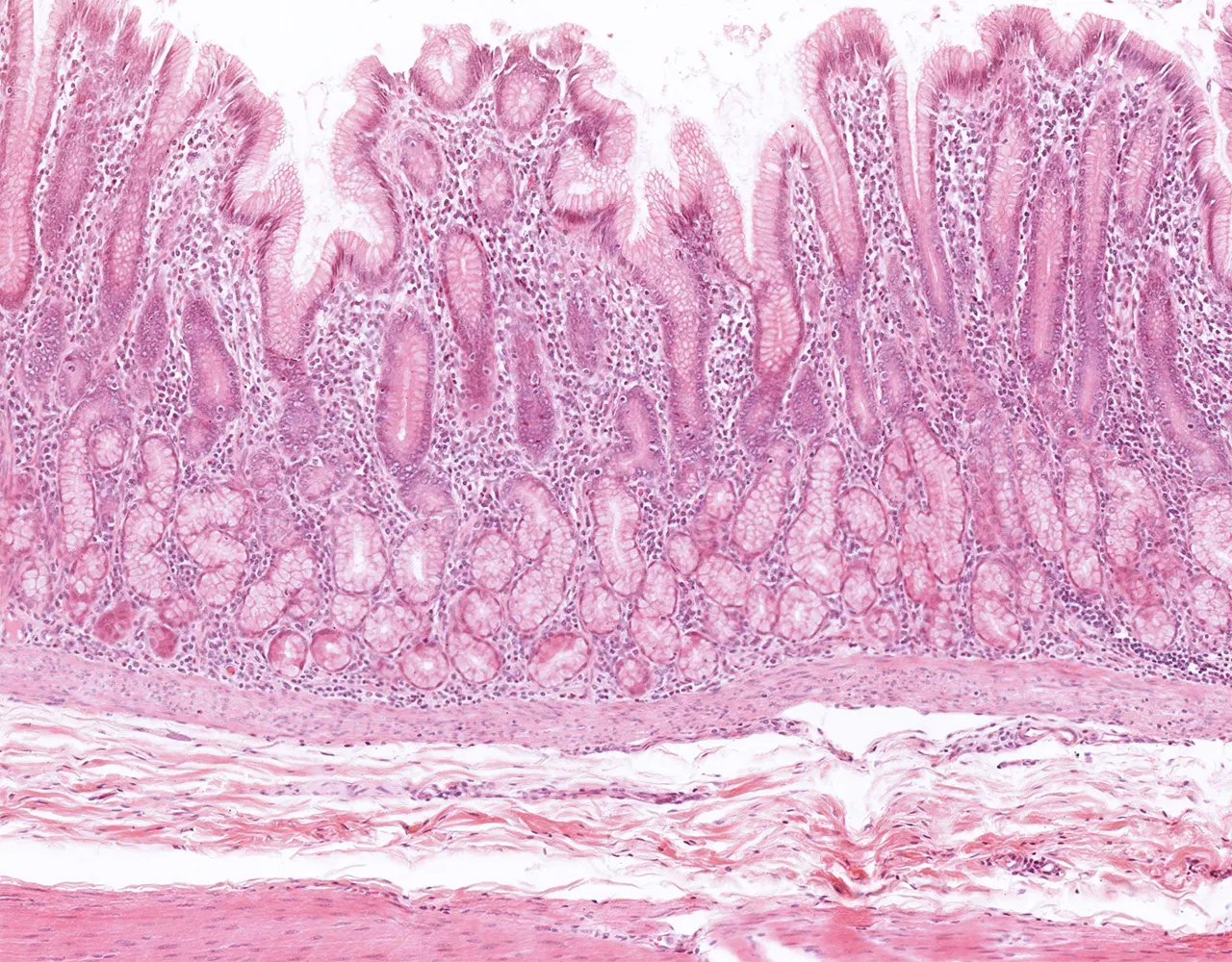 - The wall of the stomach is composed of four layers, from the innermost to the outermost: mucosa, submucosa, muscularis propria, and serosa.