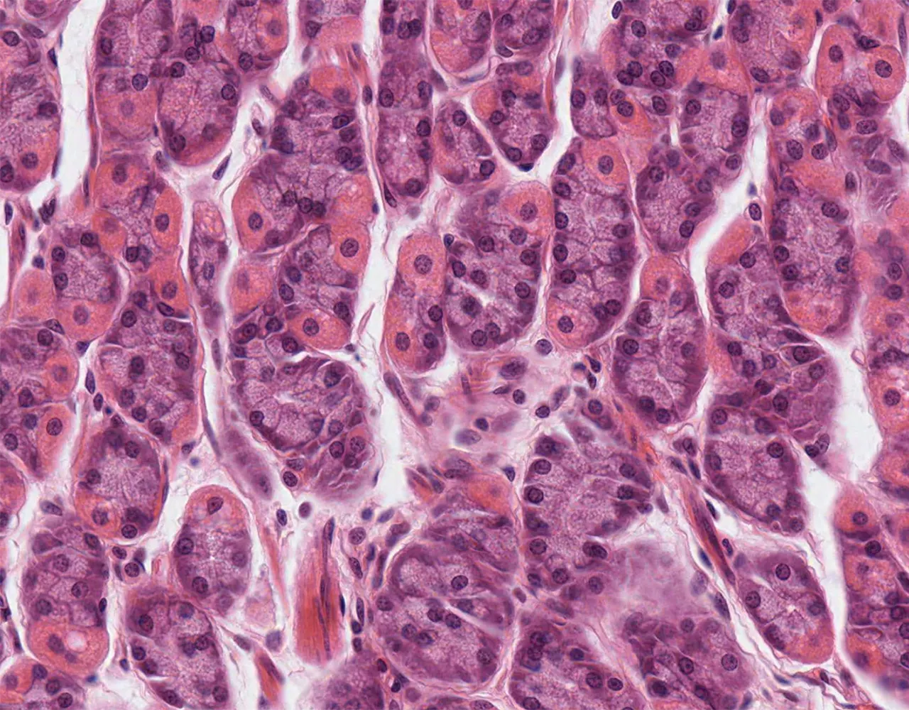 - Digestion by chemical action (secretion of HCl), enzymatic action (pepsin), and mechanical action.
